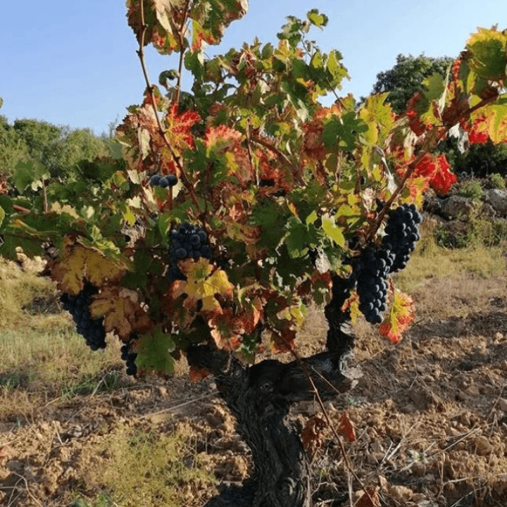Le Carignan gris, beaucoup plus rare, apporte une touche d'originalité et renforce la fraîcheur et la structure acide de l'ensemble. Il participe à la verticalité du vin.
