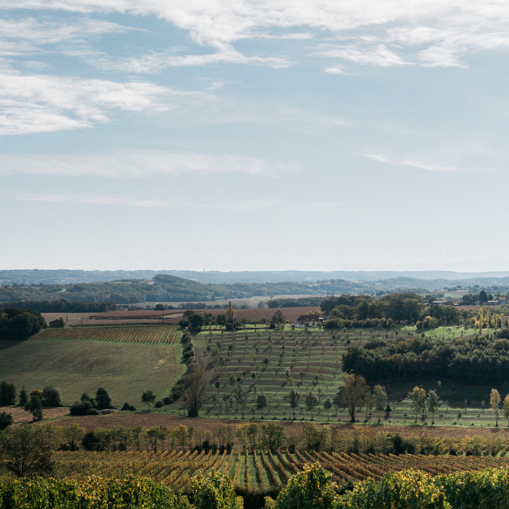 Le Colombard apporte la finesse, les notes acidulées ainsi que de la fraîcheur, tandis que le Gros manseng renforce également la structure du vin.